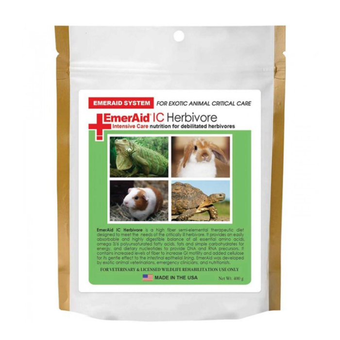 EmerAid Herbivoros é projetado para espécies herbívoras, incluindo coelhos, porquinhos-da-índia, chinchilas e répteis herbívoros, como iguanas adultas, dragões barbudos, todos os tipos de tartarugas, algumas tartarugas aquáticas e Uromastyx (lagartos de cauda espinhosa).